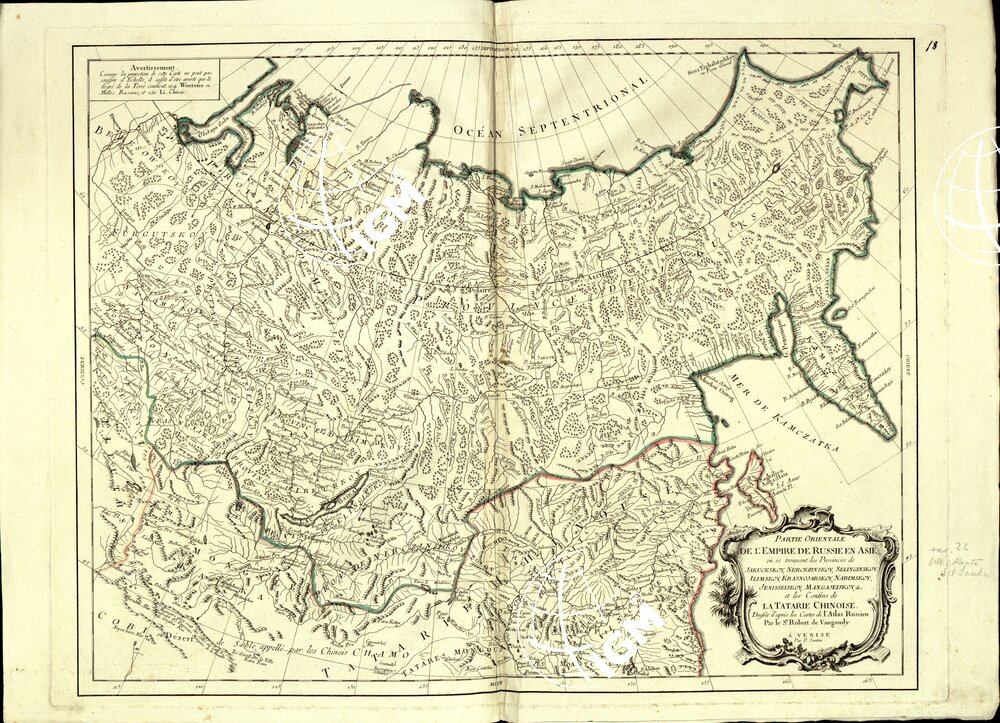 CARTE DI GEOGRAFIA-ATLANTE DEL SANTINI – Foglio 18- PARTIE ORIENTALE DE LEMPIRE DE RUSSIE EN ASIE OU TROVENT LES PROVINCES DE JAKUCKSKOY, NERCKZINKOY, SELINGINSKOY, ILIMSKOY, KRASNOJARKOY, NARIMSKOY, JENISSEISKOY, MANGAJEISKOY, & C. ELES CONFINS…