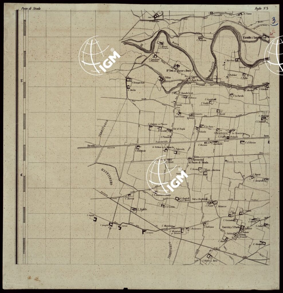 PIANO DEL REAL CASTELLO, E CITTA’ DI MONCALIERI DOVE PUR SI VEDANO LE CORRUSIONI DEL FIUME PO’ NEL TERRITORIO DELLA CITTA, E PARTE DELLA MONTAGNA CON DIVERSE FONTI, STRADE BORGHI, LASCITI, E CASSINE, CON UNA PORZIONE DEL FIUME NUNE, IL TUTTO REGOLARE.