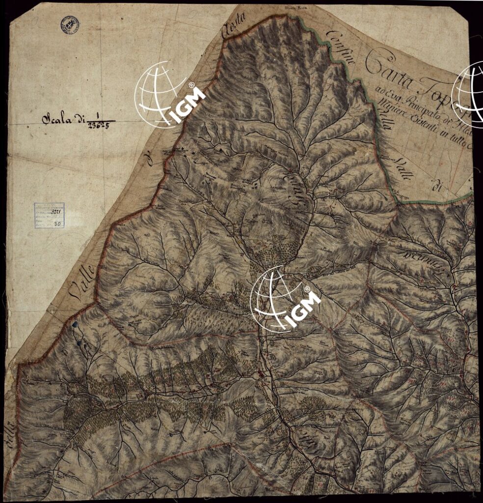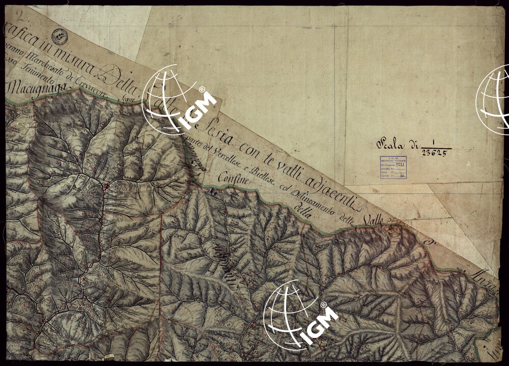 CARTA TOPOGRAFICA IN MISURA DELLA VALLE DI SESIA CON LE VALLI ADIACENTI AD ESSA PRINCIPATO MESSERANO MARCHESATO DI CRAVACORE E PARTE DEL VERCELLESE E BIELLESE COL DELINEAMENTO DELLE MINIERE ESISTENTI E IN TUTTO ESSO TENIMENTO – PARTE 1.