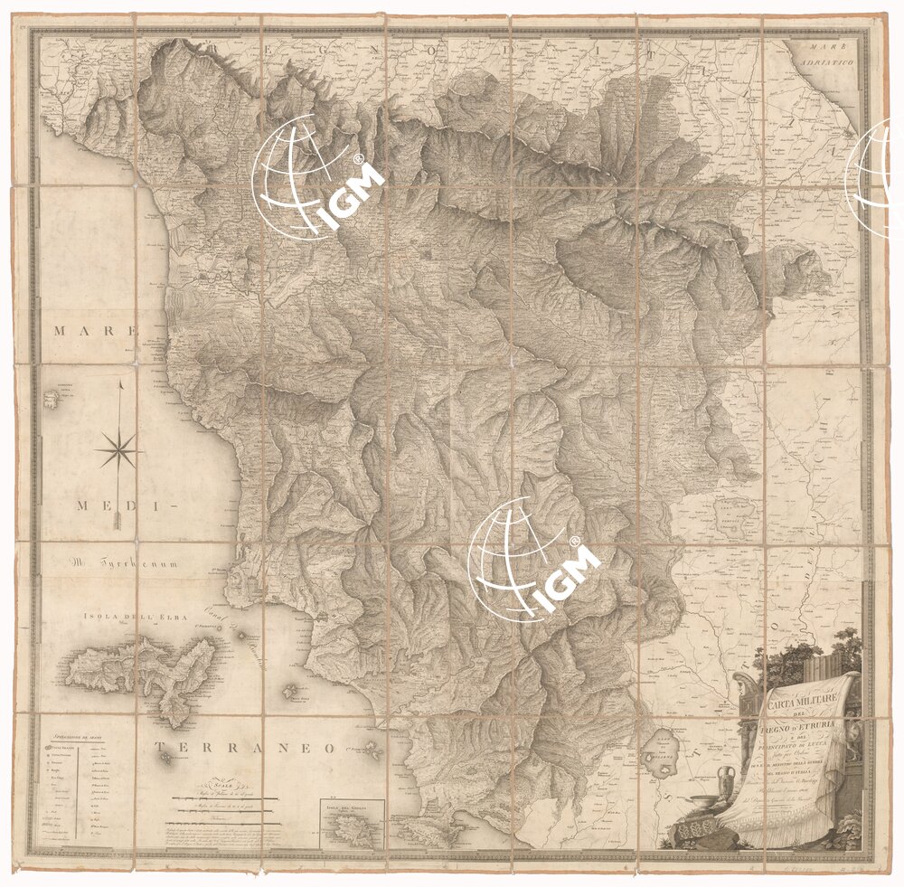 CARTA MILITARE DEL REGNO D’ ETRURIA E DEL PRINCIPATO DI LUCCA FATTA PER ORDINE DI S. E. IL MINISTRO DELLA GUERRA DEL REGNO D’ ´ITALIA, RIUNITA E DIS. DALL’ ´INCISORE G. BORDIGA PUBBLICATA L’ ANNO 1806 DAL DEPOSITO GENERALE DELLA GUERRA