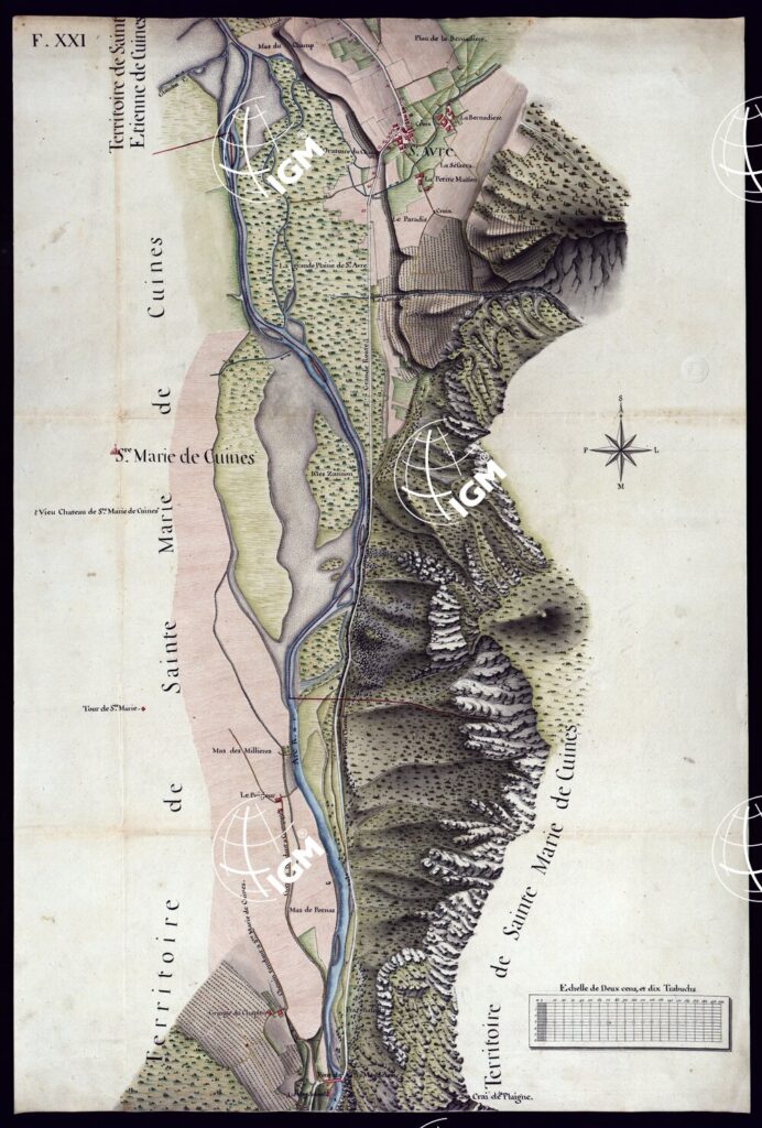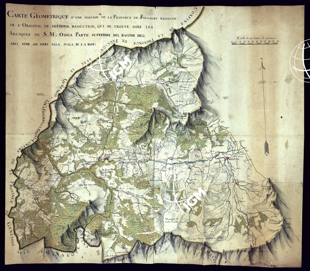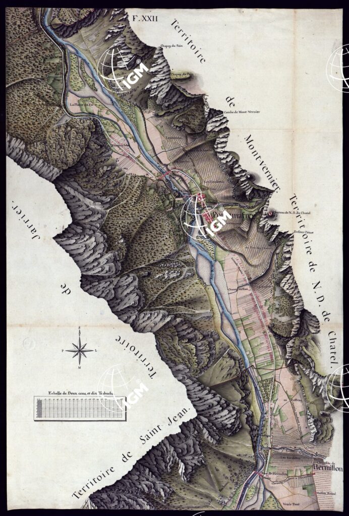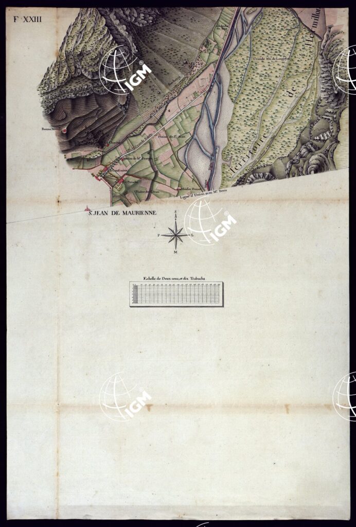 PLAN TOPOGRAPHIQUE A 1:20000 ECHELLE METRIQUE DE LA POSITION DE LESSEILON, QUI COMPREND LES COMUNES ENVIRONNANTES DE VILLAR AUDIN, BOURGET, AURIEUX, AUCOIS, ROSSENCHES, SARDIERES, BRAMANS, LE VERNEY DANS LA VALLE DE MAURIENNE LEVEE EN 1817 – FOGLIO 1.