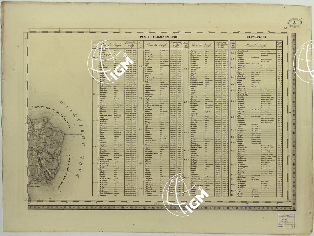 CARTA TOPOGRAFICA DELLO STATO PONTIFICIO E DEL GRAN-DUCATO DI TOSCANA COSTRUTTA SOPRA MISURE ASTRONOMICO TRIGONOMETRICHE ED INCISA SOPRA PIETRA A VIENNA NELL’I.R. ISTITUTO GEOGRAFICO MILITARE – FOGLIO G.6 PUNTI TRIGONOMICI – ELEVAZIONI