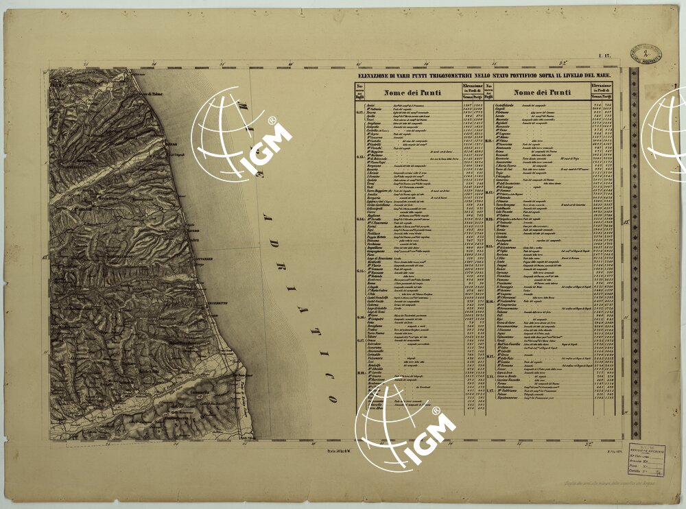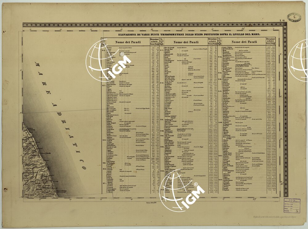 CARTA TOPOGRAFICA DELLO STATO PONTIFICIO E DEL GRAN-DUCATO DI TOSCANA COSTRUTTA SOPRA MISURE ASTRONOMICO TRIGONOMETRICHE ED INCISA SOPRA PIETRA A VIENNA NELL’I.R. ISTITUTO GEOGRAFICO MILITARE – FOGLIO I.11 – PUNTI TRIGONOMETRICI
