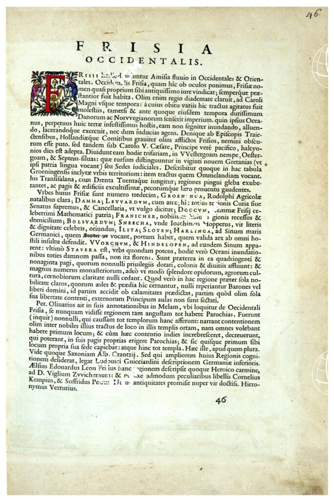 THEATRUM ORBIS TERRARUM (ATLANTE DELL’ ORTELIO) A COLORI – FRISIA OCCIDENTALIS TESTO