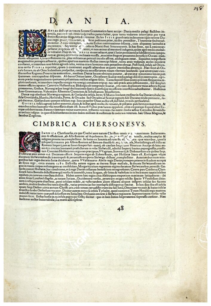 THEATRUM ORBIS TERRARUM (ATLANTE DELL’ ORTELIO) A COLORI – DANIA, CIMBRICA CHERSONESUS TESTO