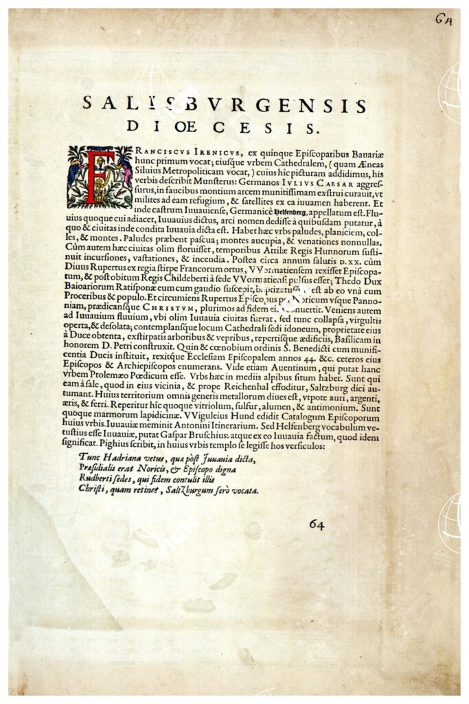 THEATRUM ORBIS TERRARUM (ATLANTE DELL’ ORTELIO) A COLORI – SALISBURGENSIS DIŒCESIS TESTO