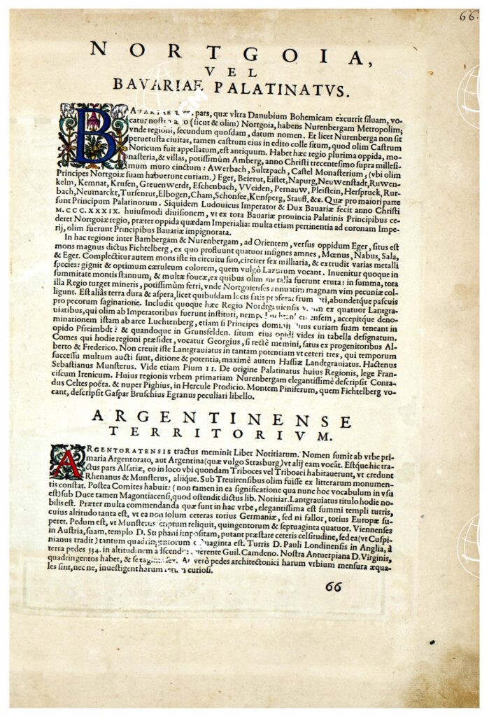 THEATRUM ORBIS TERRARUM (ATLANTE DELL’ ORTELIO) A COLORI – NORTGOIA VEL BAVARIÆ PALATINATUS, ARGENTIENSE TERRITORIUM TESTO