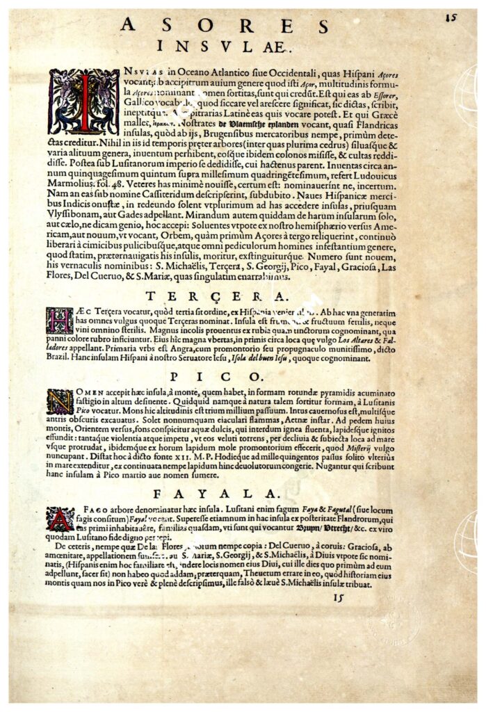 THEATRUM ORBIS TERRARUM (ATLANTE DELL’ ORTELIO) A COLORI – ASORES INSULÆ, TERCERA, PICO, FAYALA TESTO