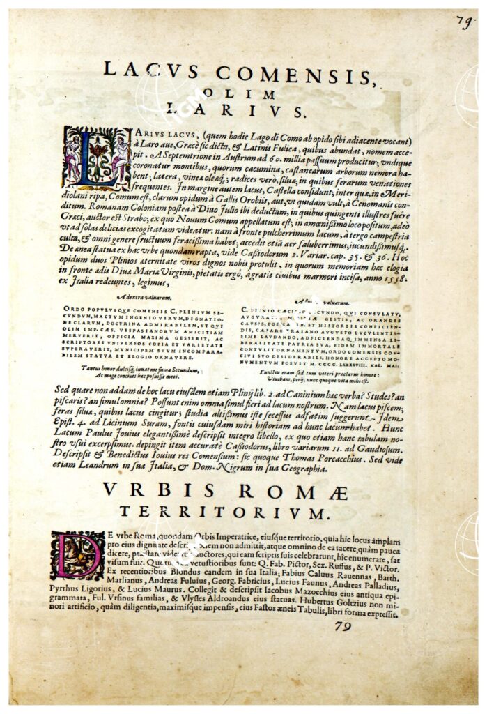 THEATRUM ORBIS TERRARUM (ATLANTE DELL’ ORTELIO) A COLORI – LACUS COMENSIS OLIM LARIUS, URBIS ROMÆ TERRITORIUM TESTO