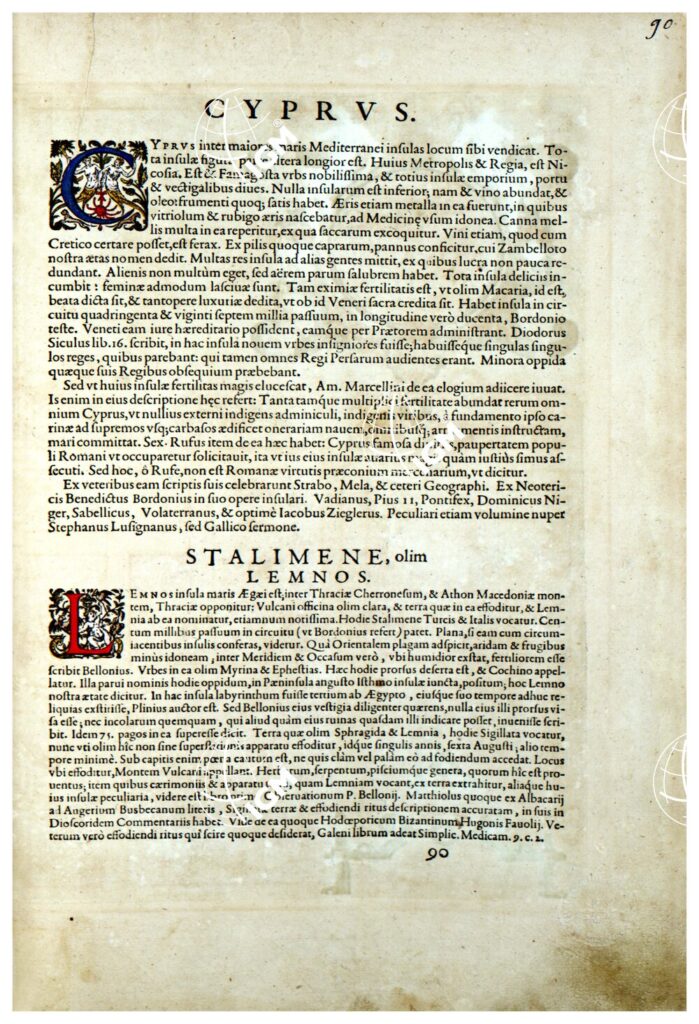 THEATRUM ORBIS TERRARUM (ATLANTE DELL’ ORTELIO) A COLORI – CIPRUS, STALIMENE OLIM LEMNOS TESTO