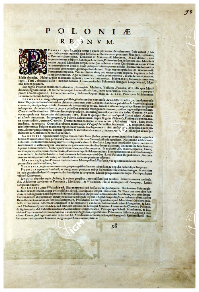 THEATRUM ORBIS TERRARUM (ATLANTE DELL’ ORTELIO) A COLORI – POLONIÆ REGNUM TESTO