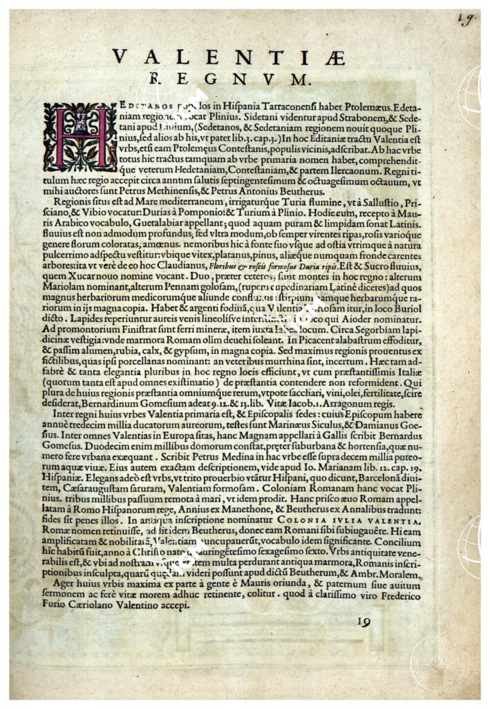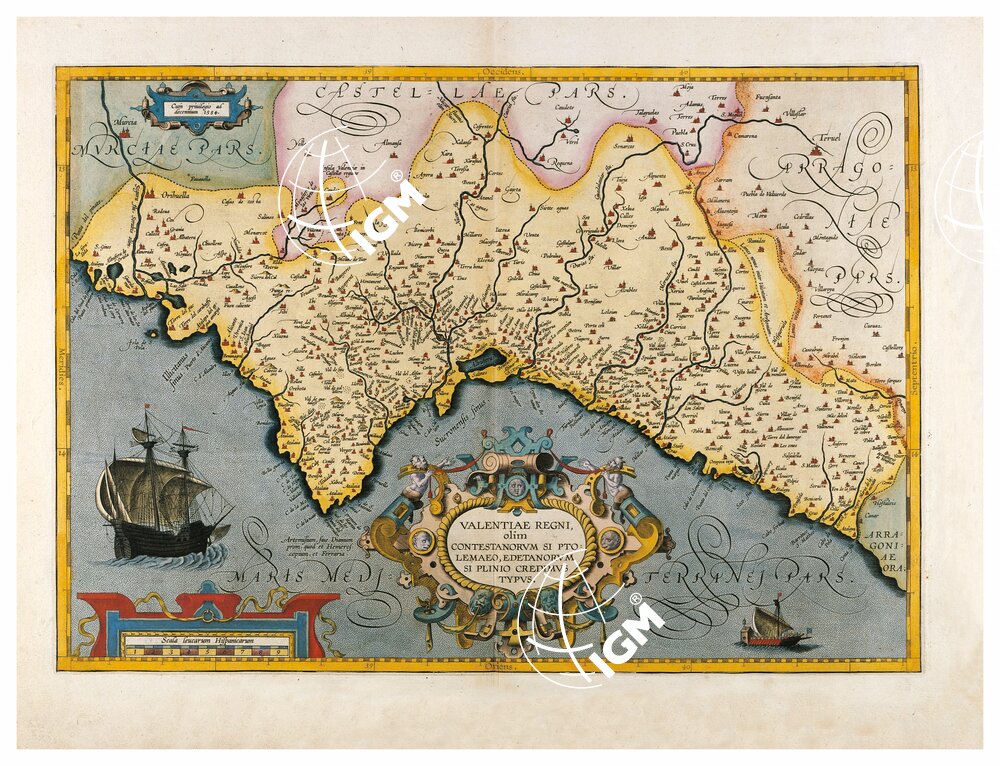 THEATRUM ORBIS TERRARUM (ATLANTE DELL’ ORTELIO) A COLORI – VALENTIÆ REGNI OLIM CONTESTANORUM SIPTOLEMAO, EDETARORUM SCIPLINIO CREDIMUS TYPUS TAVOLA 19