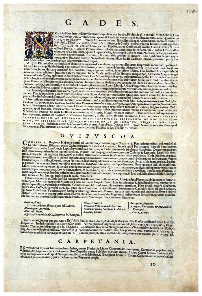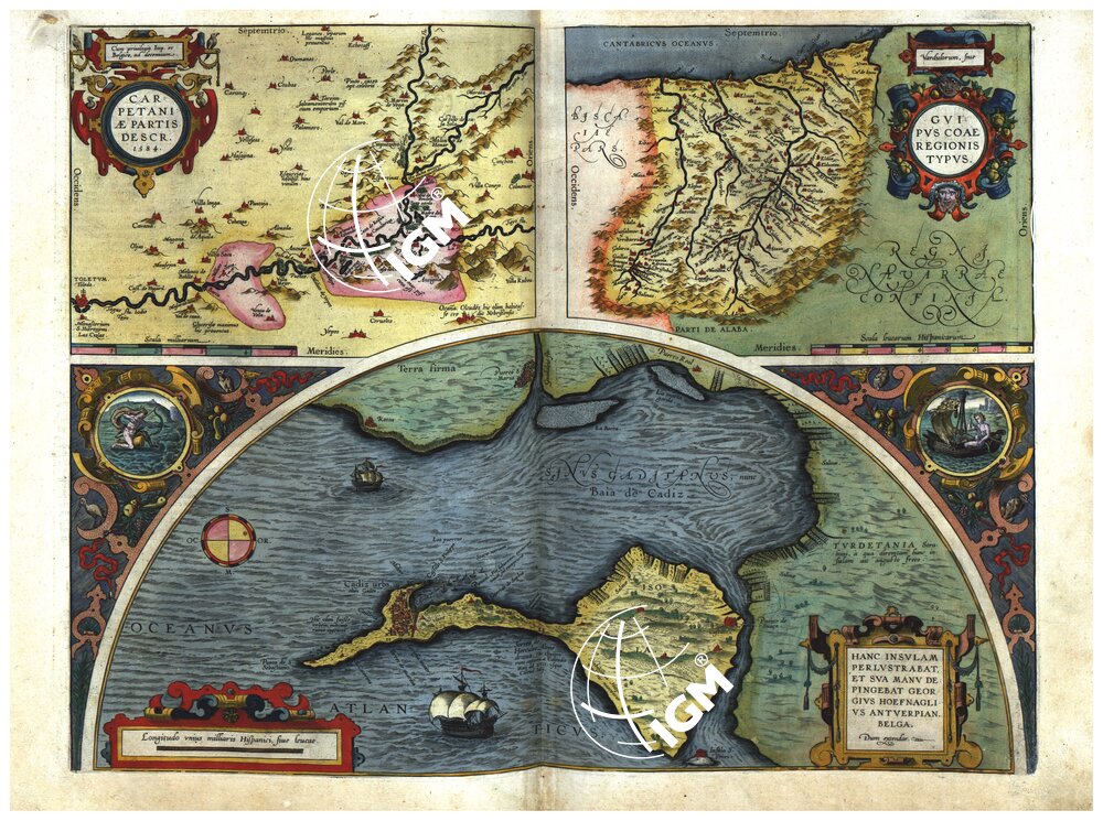THEATRUM ORBIS TERRARUM (ATLANTE DELL’ ORTELIO) A COLORI – GADES, GUIPUSCOA, CARPETANIA TESTO
