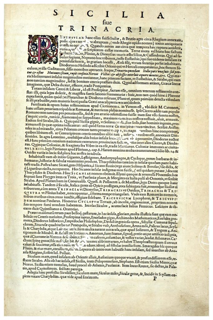 THEATRUM ORBIS TERRARUM (ATLANTE DELL’ ORTELIO) A COLORI – SICILIA FIUE TRINACRIA TESTO