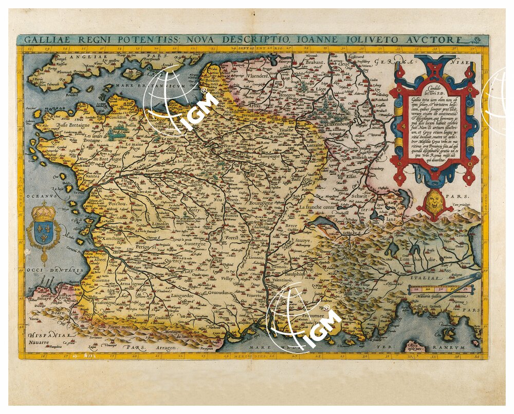 THEATRUM ORBIS TERRARUM (ATLANTE DELL’ ORTELIO) A COLORI – GALLIÆ REGNI POTENTISS: NOVA DESCRIPTIO, AUCTORE IOANNE IOLIVETO TAVOLA 21