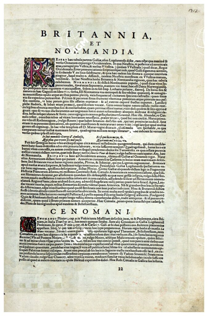 THEATRUM ORBIS TERRARUM (ATLANTE DELL’ ORTELIO) A COLORI – BRITANNIA ET NORMANDIA, CENOMANI TAVOLA 22