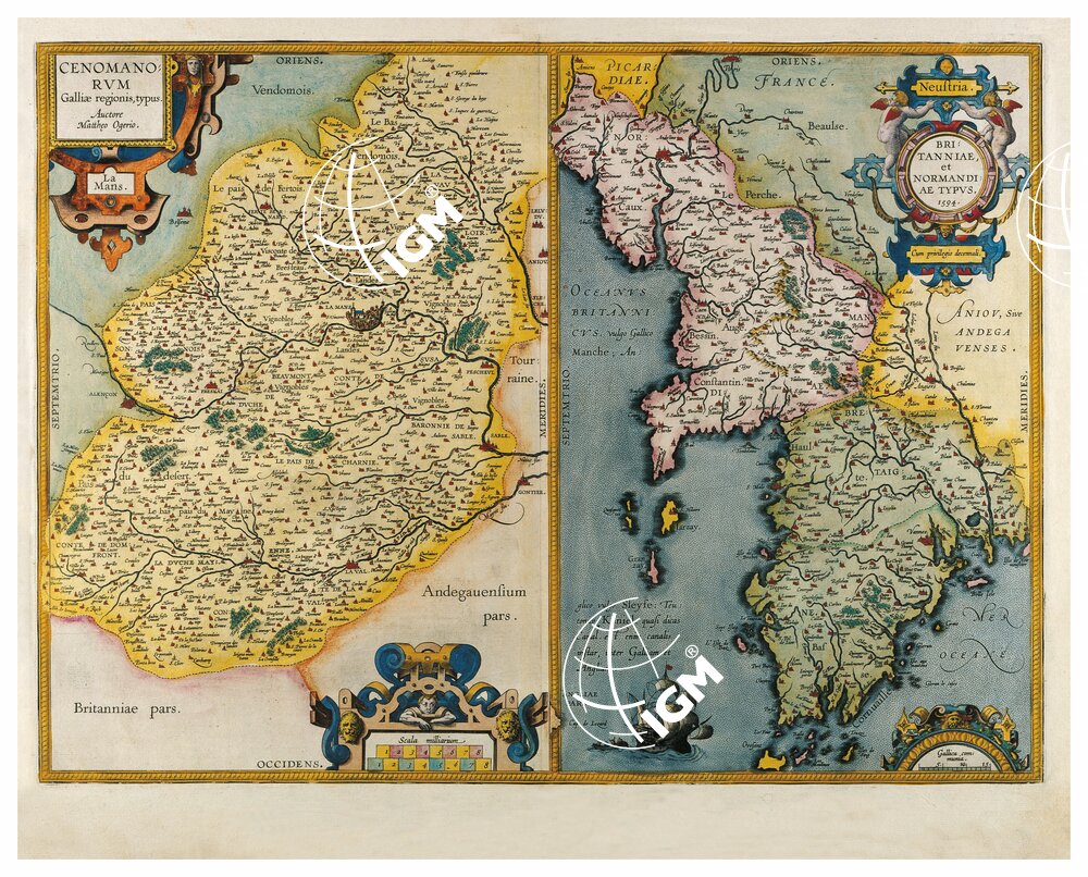 THEATRUM ORBIS TERRARUM (ATLANTE DELL’ ORTELIO) A COLORI – BRITANNIA ET NORMANDIA, CENOMANI TESTO