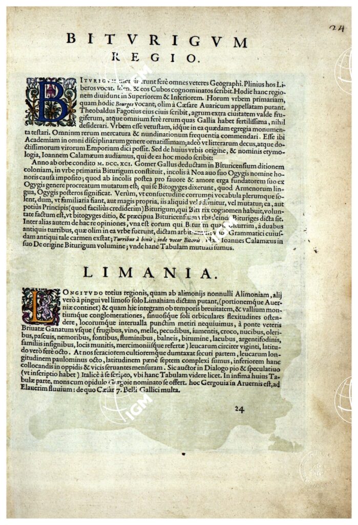 THEATRUM ORBIS TERRARUM (ATLANTE DELL’ ORTELIO) A COLORI – BITURIGUM REGIO – LIMANIA TESTO