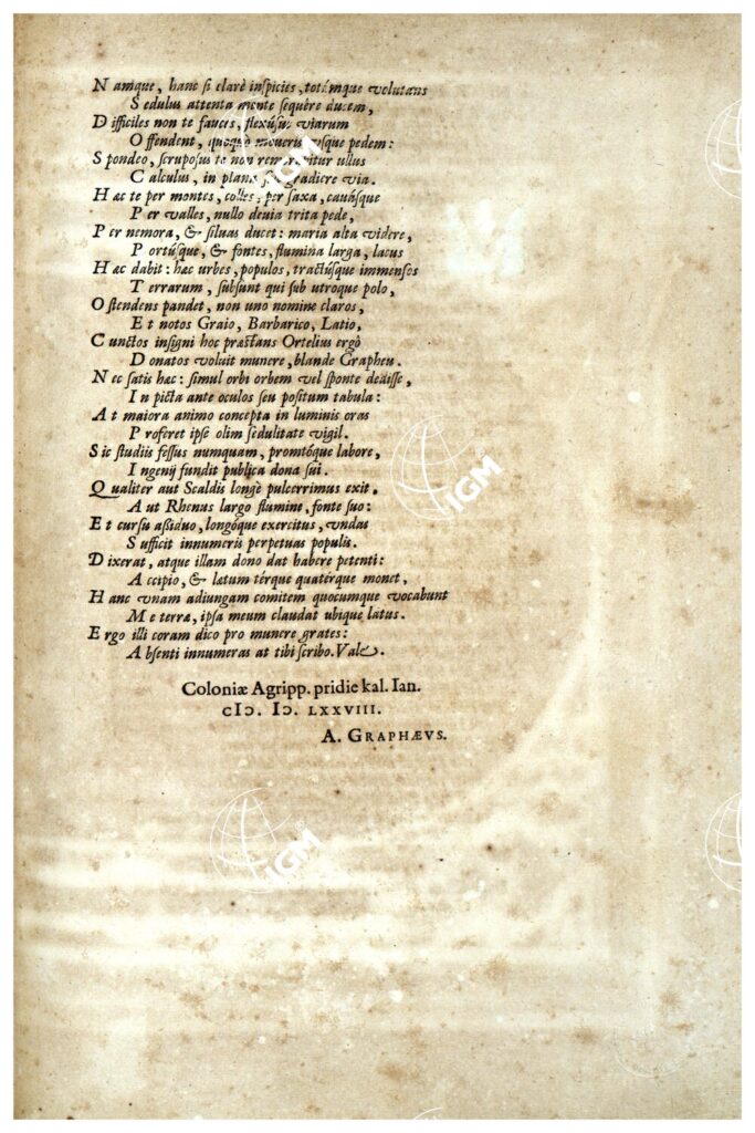 THEATRUM ORBIS TERRARUM (ATLANTE DELL’ ORTELIO) A COLORI – ONORATISSIMO VIRO D.ABRAHAM ORTELIO DEDICA A.GRAPHEUS PAGINA 3