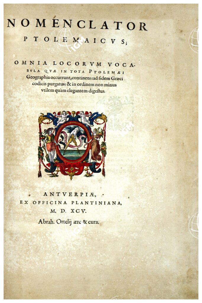 THEATRUM ORBIS TERRARUM (ATLANTE DELL’ ORTELIO) A COLORI – NOMÈNCLATOR PTOLEMAICUS TESTO