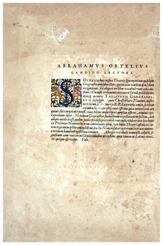 THEATRUM ORBIS TERRARUM (ATLANTE DELL’ ORTELIO) A COLORI – ABRAHAMUS ORTELIUS CANDIDO LECTORI TESTO