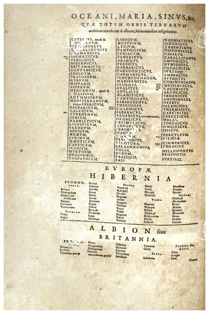 THEATRUM ORBIS TERRARUM (ATLANTE DELL’ ORTELIO) A COLORI – TERRARUM DIVIDITUR IN PARTES TRES, QUAE, FUNT, OCEANI MARIZ SINUS ecc…, EUROPA HIBERNIA, ALBION FIUE BRITANNIA INDICE