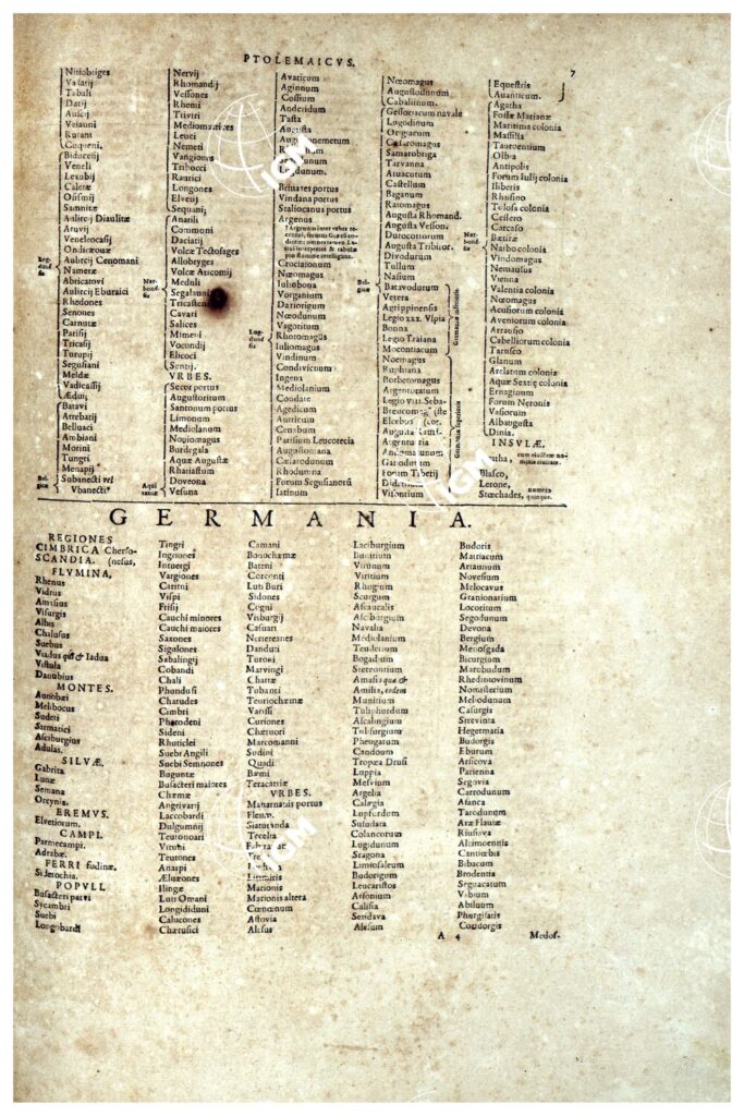 THEATRUM ORBIS TERRARUM (ATLANTE DELL’ ORTELIO) A COLORI – GERMANIA, PANNONIA INFERIOR, PANNONIA SUPERIOR, RHAETIA, VINDELICIA, NORICUM, ILLYRIS INDICE
