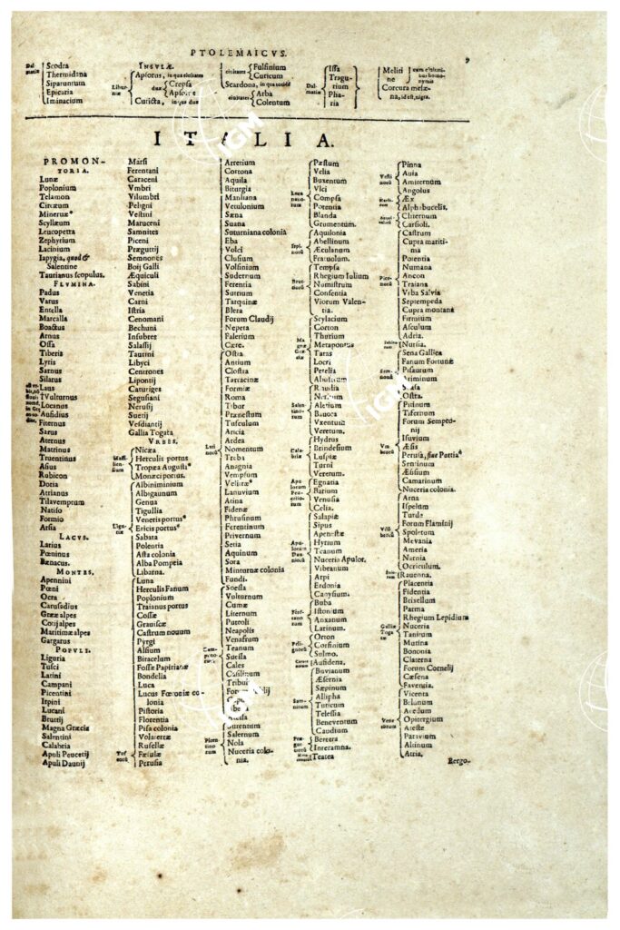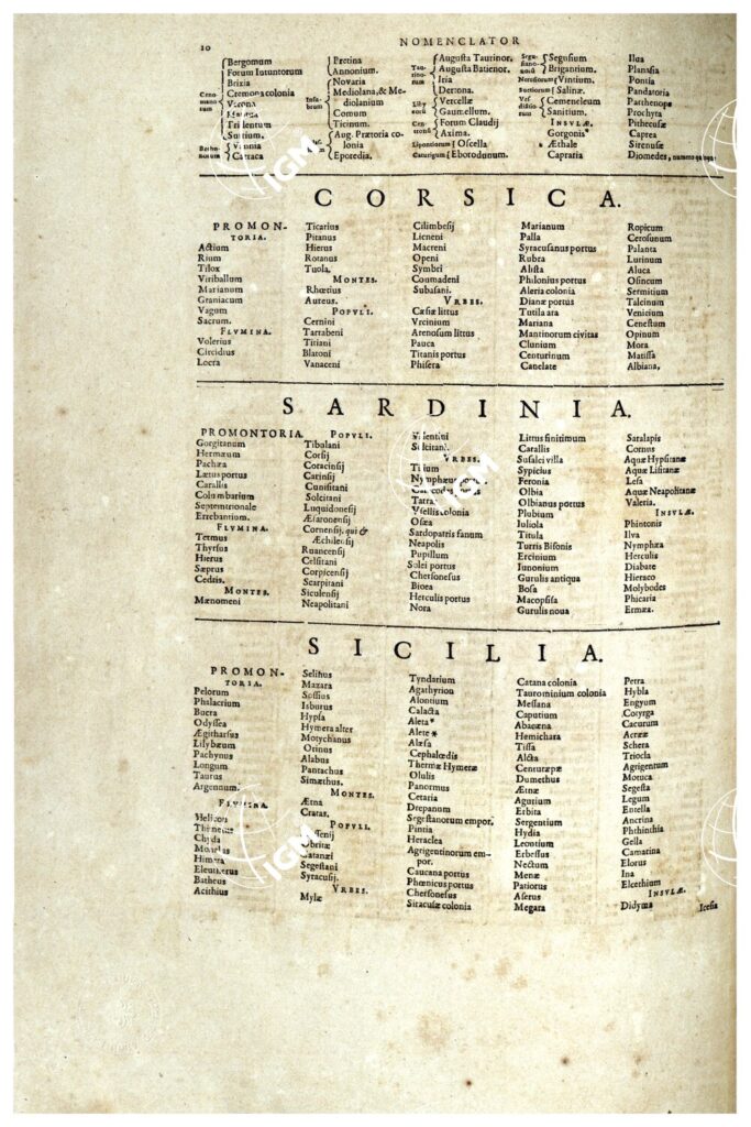 THEATRUM ORBIS TERRARUM (ATLANTE DELL’ ORTELIO) A COLORI – ITALIA, CORSICA, SARDINIA, SICILIA INDICE
