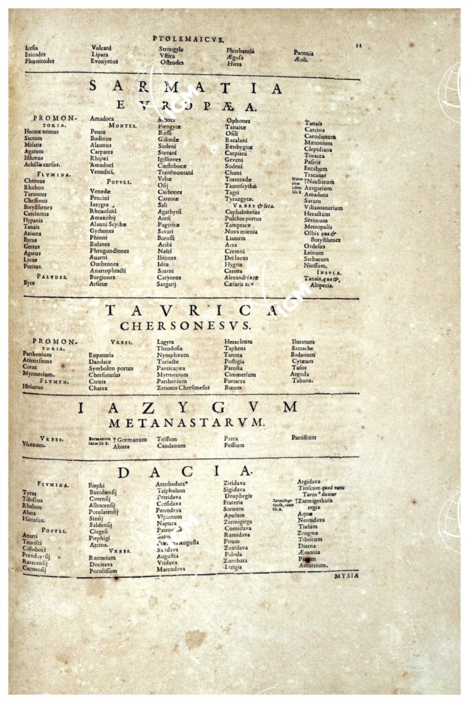 THEATRUM ORBIS TERRARUM (ATLANTE DELL’ ORTELIO) A COLORI – MYSIA SUPERIOR, MYSIA INFERIOR, THRACIA, CHERSONESI, MACEDONIA INDICE