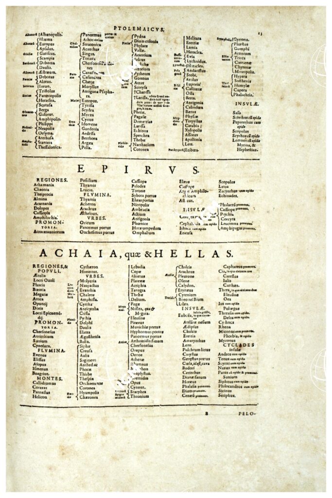THEATRUM ORBIS TERRARUM (ATLANTE DELL’ ORTELIO) A COLORI – MACEDONIA, EPIRUS, ACHAIA, QUÆ & HELLAS INDICE