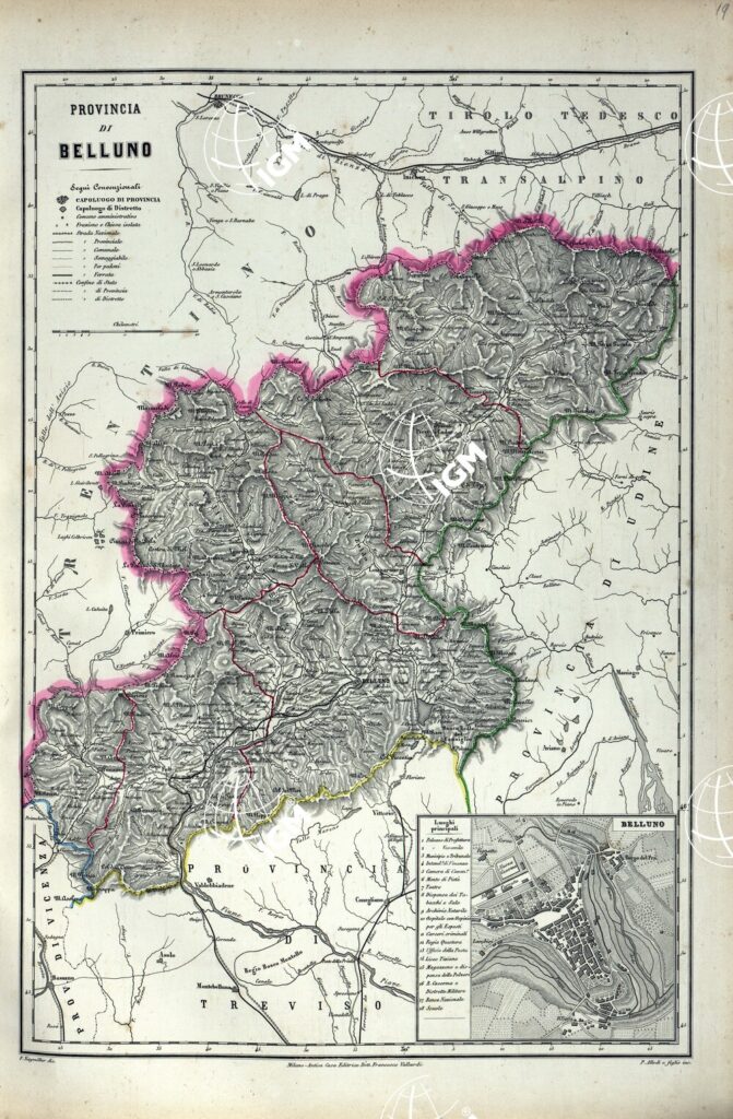 ATLANTE ORO-IDROGRAFICO COROGRAFICO E STORICO DELL’ ITALIA ANNI dal 1138 a dopo il 1870 – PROVINCIA DI BELLUNO