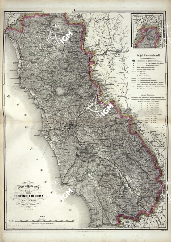 ATLANTE ORO-IDROGRAFICO COROGRAFICO E STORICO DELL’ ITALIA ANNI dal 1138 a dopo il 1870 – CARTA COROGRAFICA DELLA PROVINCIA DI ROMA