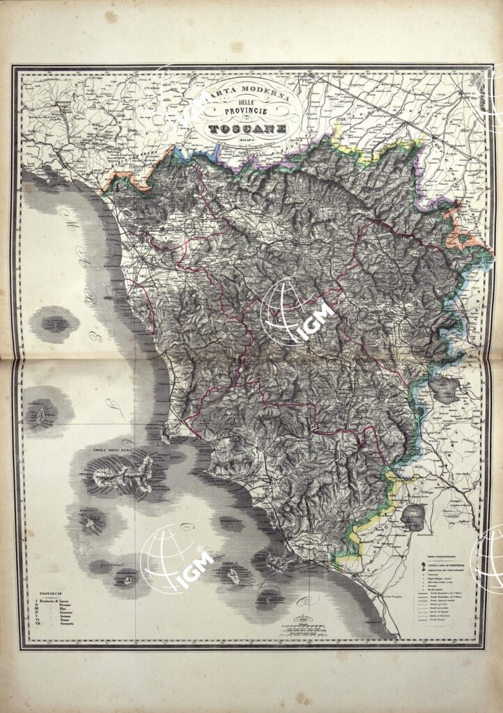 ATLANTE ORO-IDROGRAFICO COROGRAFICO E STORICO DELL’ ITALIA ANNI dal 1138 a dopo il 1870 – PROVINCIE DI LIVORNO E PISA, PROVINCIE DI LUCCA E DI MASSA CARRARA