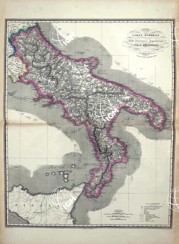 ATLANTE ORO-IDROGRAFICO COROGRAFICO E STORICO DELL’ ITALIA ANNI dal 1138 a dopo il 1870 – CARTA MODERNA DELLE PROVINCIE NAPOLETANE – ITALIA MERIDIONALE