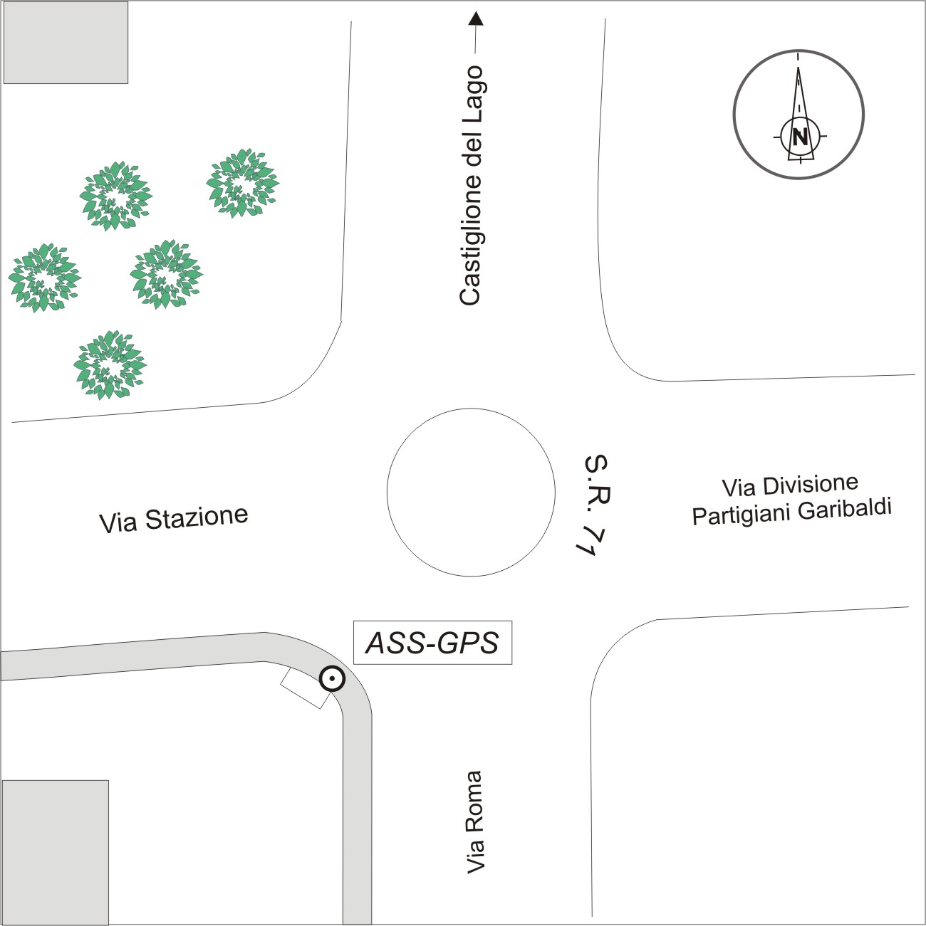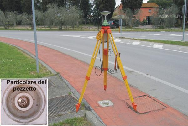 | materializzazione | Centrino in acciaio inox del tipo GPS da livellazione, della Rete Geodetica della Regione Umbria, infisso in prossimità dello spigolo del telaio in calcestruzzo di un grosso pozzetto d'ispezione, presso l'incrocio della SS 71 km 101,300 con Via Stazione. Il contrassegno è protetto da un chiusino circolare in plastica. |