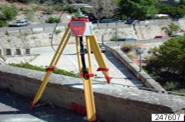Centrino metallico infisso su muretto parapetto in calcestruzzo a bordo strada.