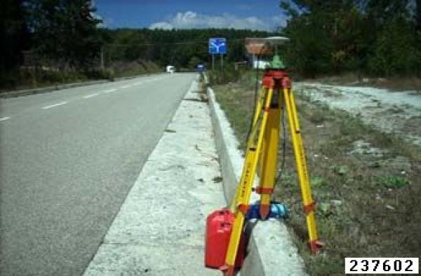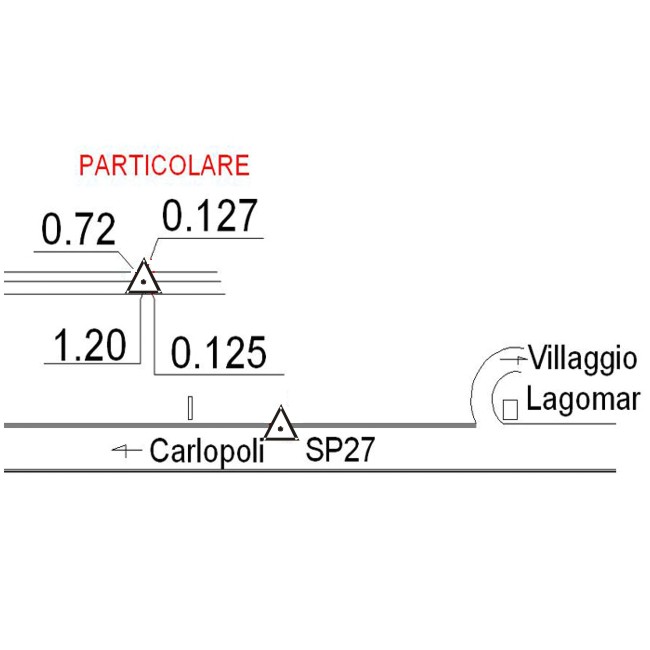 Centrino metallico infisso su cordolo in cemento di cunetta stradale.