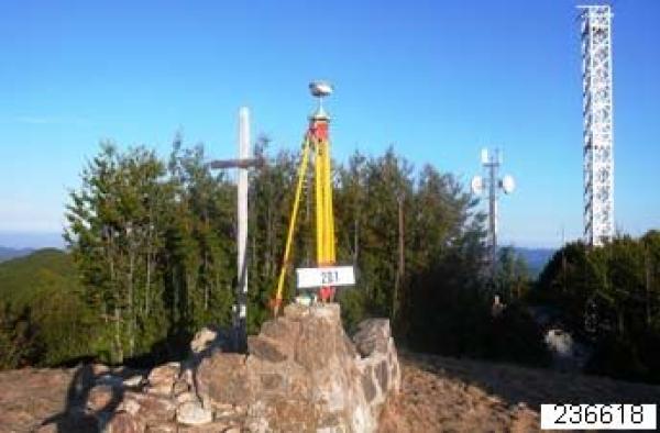 | materializzazione | Centrino metallico infisso su basamento in pietra adiacente ad una croce in legno e vicino alle cabine delle antenne telefoniche e dei VV.FF.. |