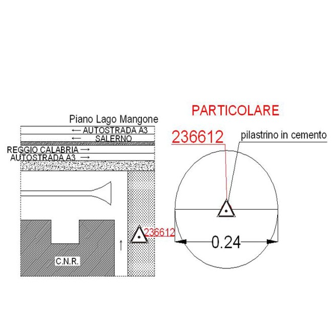 | materializzazione | Centrino metallico infisso su pilastrino in calcestruzzo. |