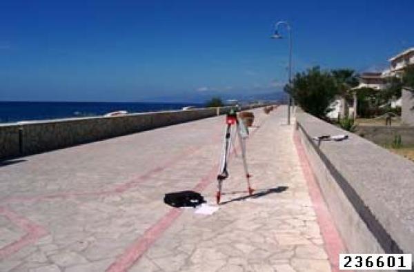 Centrino metallico infisso su pavimentazione lungomare.