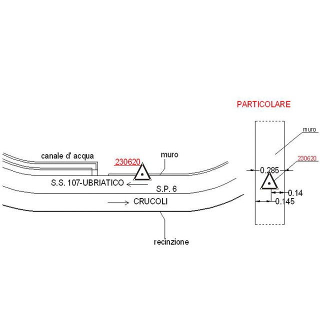 | materializzazione | Centrino metallico infisso su muretto in calcestruzzo a bordo strada. |