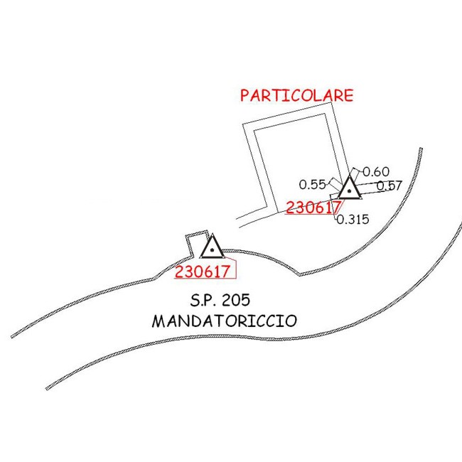 | materializzazione | Centrino metallico infisso su muro di sostegno a bordo strada. |