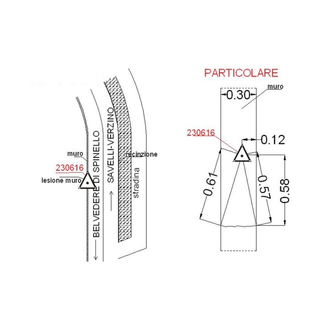 | materializzazione | Centrino metallico infisso su muretto in calcestruzzo a bordo strada. |
