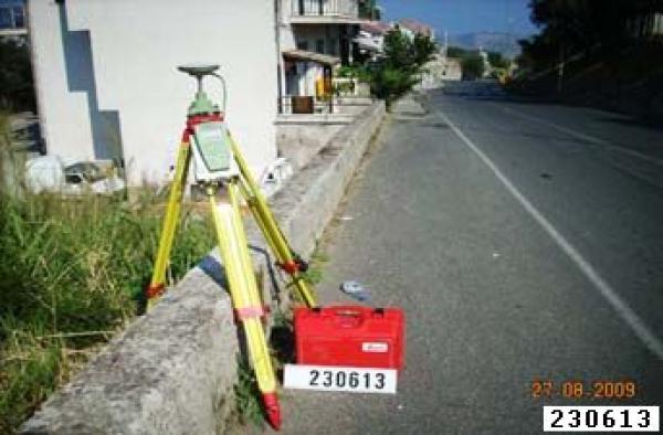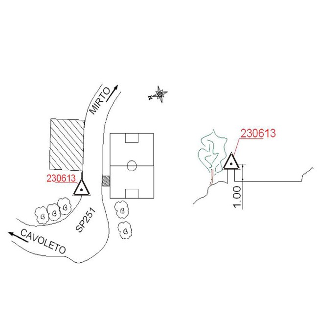 | materializzazione | Centrino metallico infisso su testa di parapetto in calcestruzzo a bordo strada. |