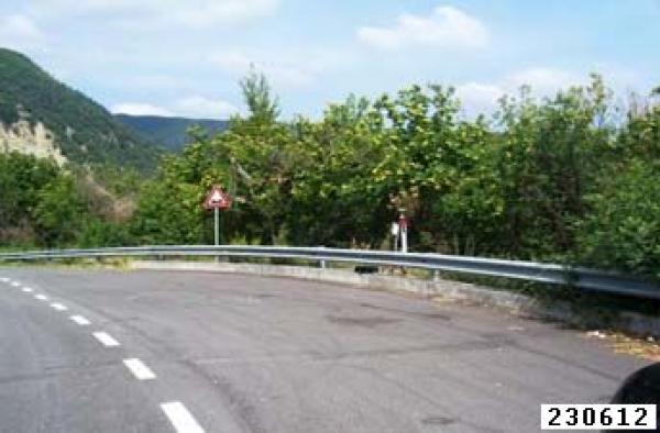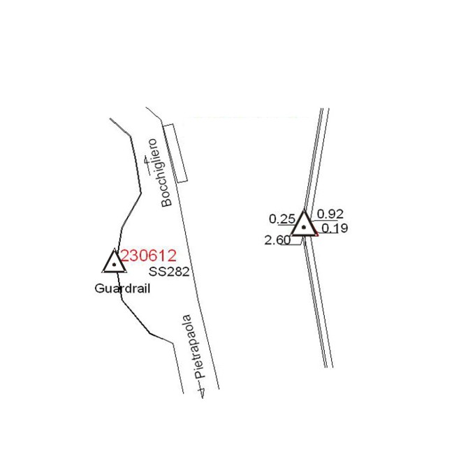 | materializzazione | Centrino metallico infisso su testa di muretto a bordo strada. |