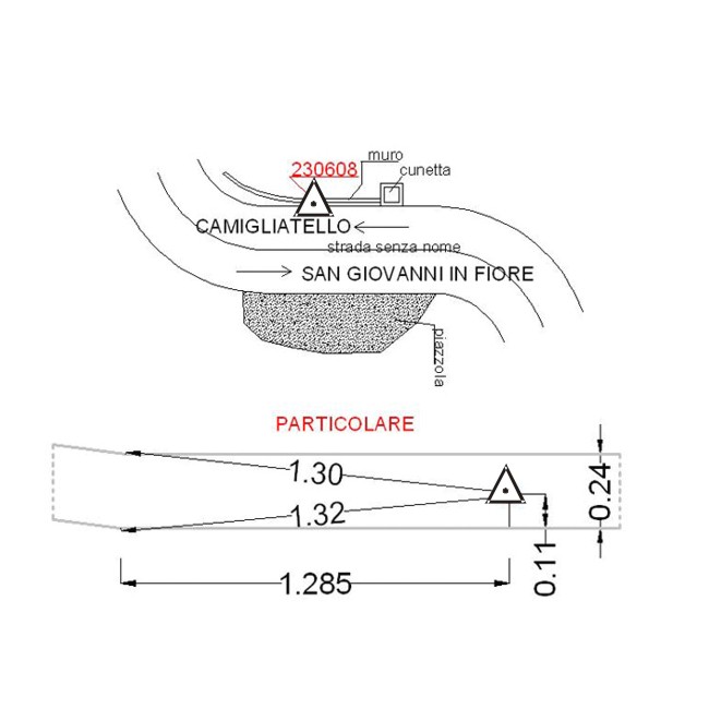| materializzazione | Centrino metallico infisso su muro in calcestruzzo a bordo strada. |