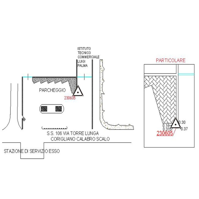| materializzazione | Centrino metallico infisso su cordolo di marciapiede in calcestruzzo. |