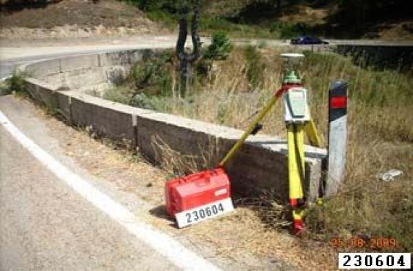 | materializzazione | Centrino metallico infisso su testa di parapetto in calcestruzzo a bordo strada. |