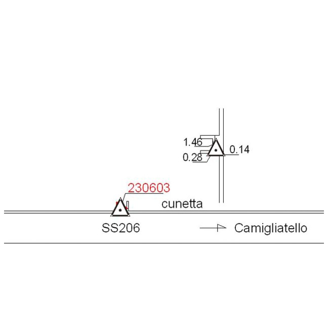 | materializzazione | Centrino metallico infisso su testa di muretto in cemento a bordo strada, posto a riparo di un canale di scolo. |