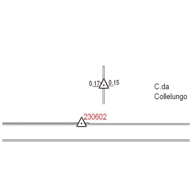 | materializzazione | Centrino metallico infisso su cordolo di cunetta in calcestruzzo. |